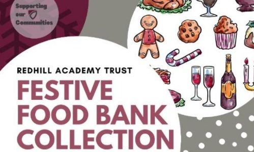We're excited to launch the Redhill Academy Trust Festive Food Bank Collection. Our school will be collecting for Chesterfield Food Bank. Please bring your donations in by 12 December to the school office. Thank you. See Class Dojo for more details!